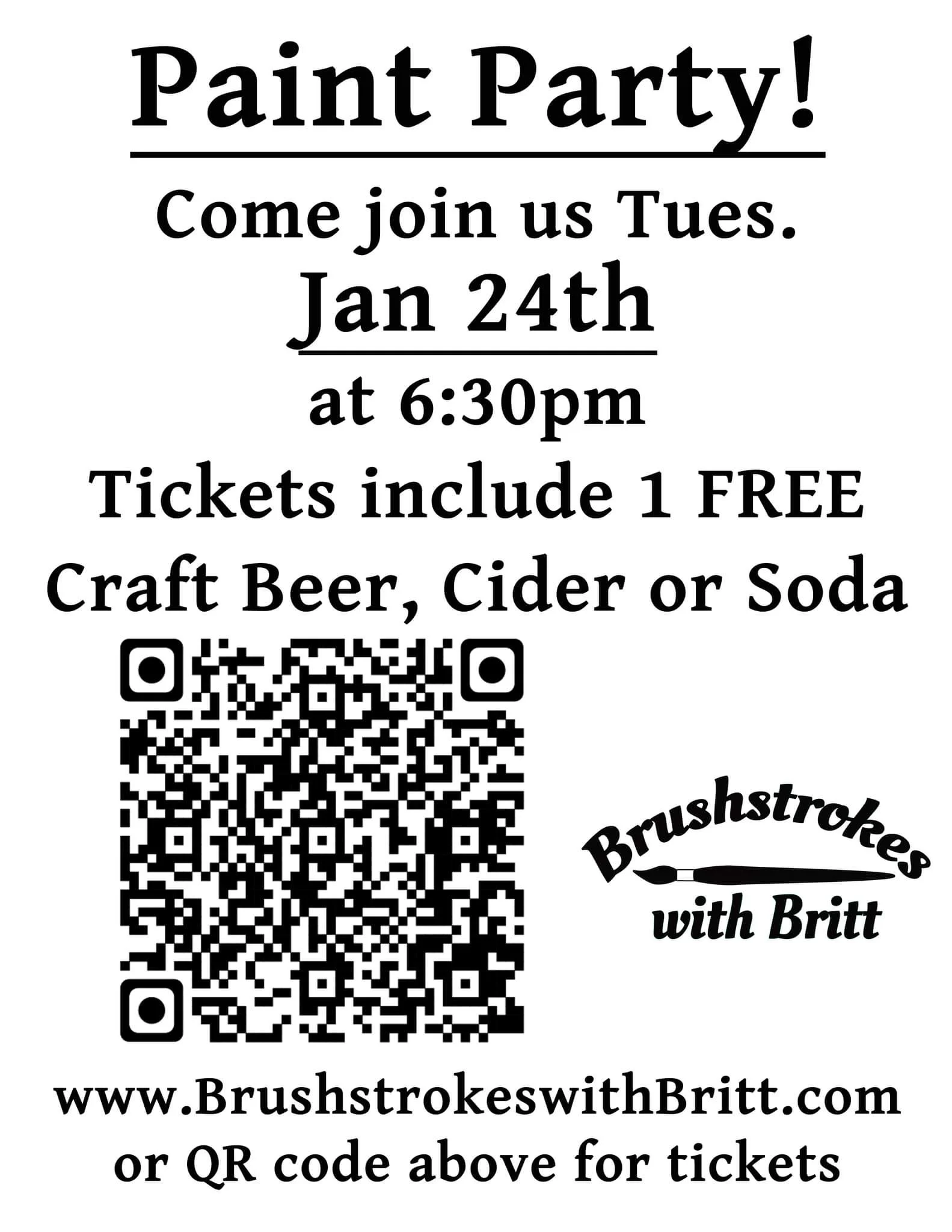 Paint Party 6:30, details below, but your tickets in advance
