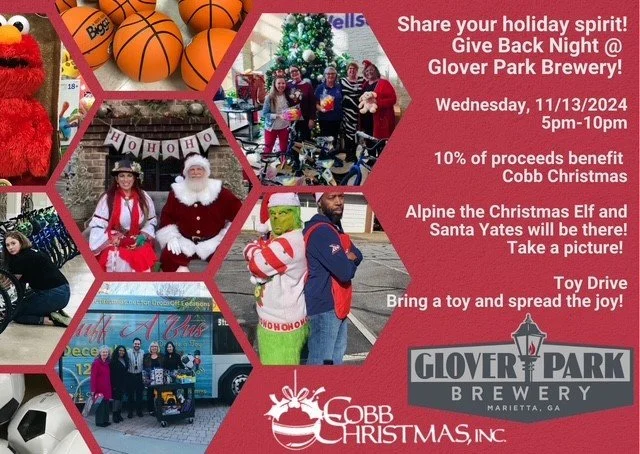 Give Back Night with Cobb Christmas, and Pizza by Fuscos Food Truck! Wednesday, November 13, 2024 4:00 PM 10:00 PM Glover Park Brewery 65 Atlanta Street Southeast Marietta, GA, 30060 United States (map) Google Calendar ICS Pizza by Fuscos Food Truck (4:00 PM - 9:00 PM)